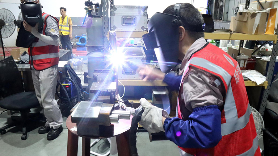 ????本次大賽通過(guò)平焊、直角焊接、雙面成型焊接及電焊這四種類型進(jìn)行比拼。裁判們對(duì)每件成品嚴(yán)格把關(guān),從選手的安全意識(shí)、作品外觀、細(xì)節(jié)處理及完成效率等方面進(jìn)行綜合考察。正是這種對(duì)每一個(gè)零件、每一個(gè)環(huán)節(jié)的嚴(yán)加把控,使得達(dá)意隆能夠按時(shí)保質(zhì)地將設(shè)備交付到客戶手中,贏得客戶的信賴與好評(píng)。