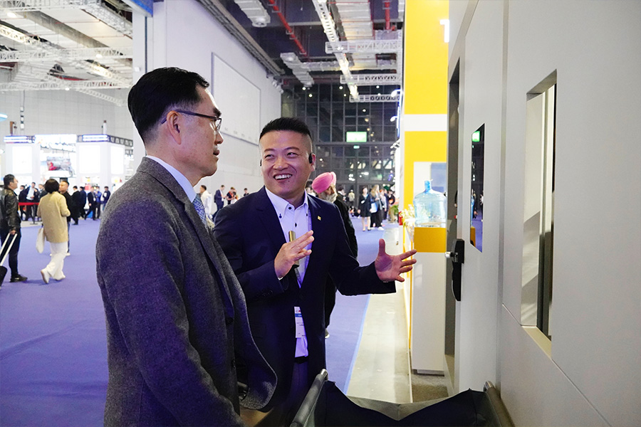 現(xiàn)場,采用國際前沿技術(shù)自主研發(fā)而成的第六代全自動旋轉(zhuǎn)式吹瓶機(jī)成為最濃墨重彩的標(biāo)識,其所具備的自動化、智能化程度高,產(chǎn)品質(zhì)量優(yōu)良穩(wěn)定,生產(chǎn)效率高、低能耗等特點彰顯了無與倫比的生產(chǎn)效率,引得客戶們紛紛駐足達(dá)意隆展位,與我們的工作人員展開熱烈交流,共同探討合作的可能性。