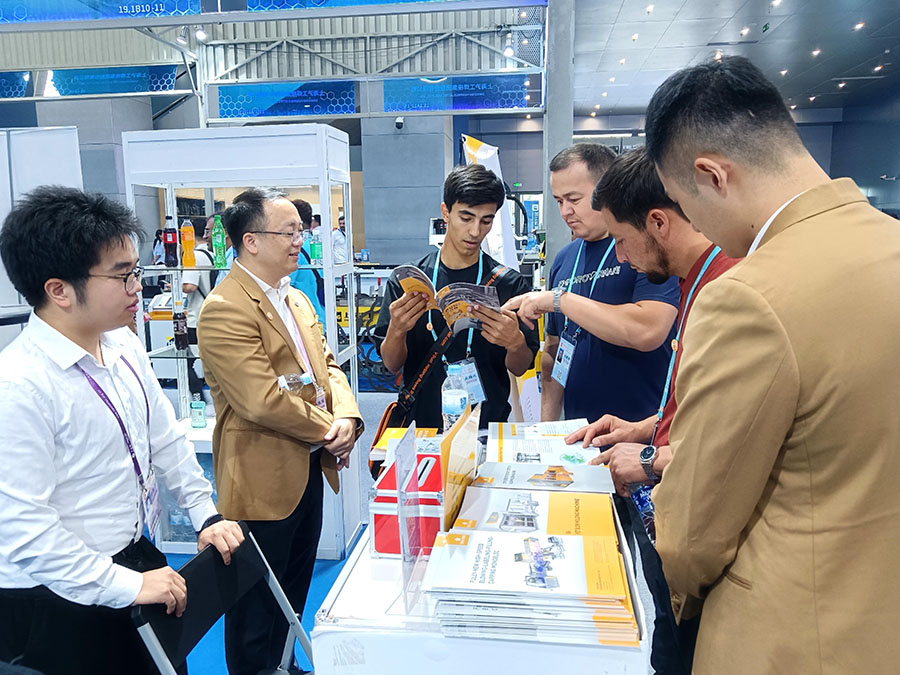 在對貼標(biāo)機(jī)進(jìn)行了近距離的觀摩與達(dá)意隆團(tuán)隊(duì)的專業(yè)解說下,客戶對我們的技術(shù)創(chuàng)新有了更為全面深刻的了解并紛紛給予高度評價(jià)。現(xiàn)場外國客戶來訪不斷,洽談其歡,相繼約定工廠的實(shí)地考察與合作意向。