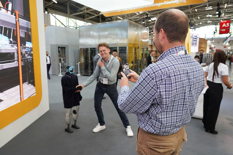 展臺前,人形機(jī)器人正在為觀眾們講解達(dá)意隆的公司介紹與設(shè)備優(yōu)勢,觀眾們紛紛駐足互動(dòng),在一問一答間,對達(dá)意隆的技術(shù)實(shí)力與產(chǎn)品創(chuàng)新有了更生動(dòng)的認(rèn)知。